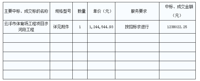 云浮市億鑫招標采購代理有限公司受云浮市體育局的委托,于2019年01月30日就云浮市體育場工程項目涉河段工程(445300-201901-408001-0002)采用競爭性磋商進行采購。現(xiàn)就本次采購的中標(成交)結(jié)果公告如下: