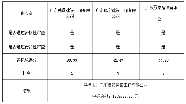 1:中標供應(yīng)商名稱廣東穗晟建設(shè)工程有限公司 法人代表 李輝龍 地址 茂名市電白區(qū)海濱新區(qū)第一小區(qū)單體小住宅D區(qū)D02號401房